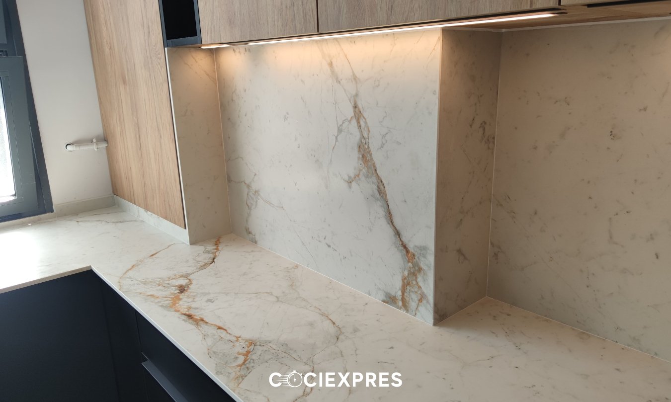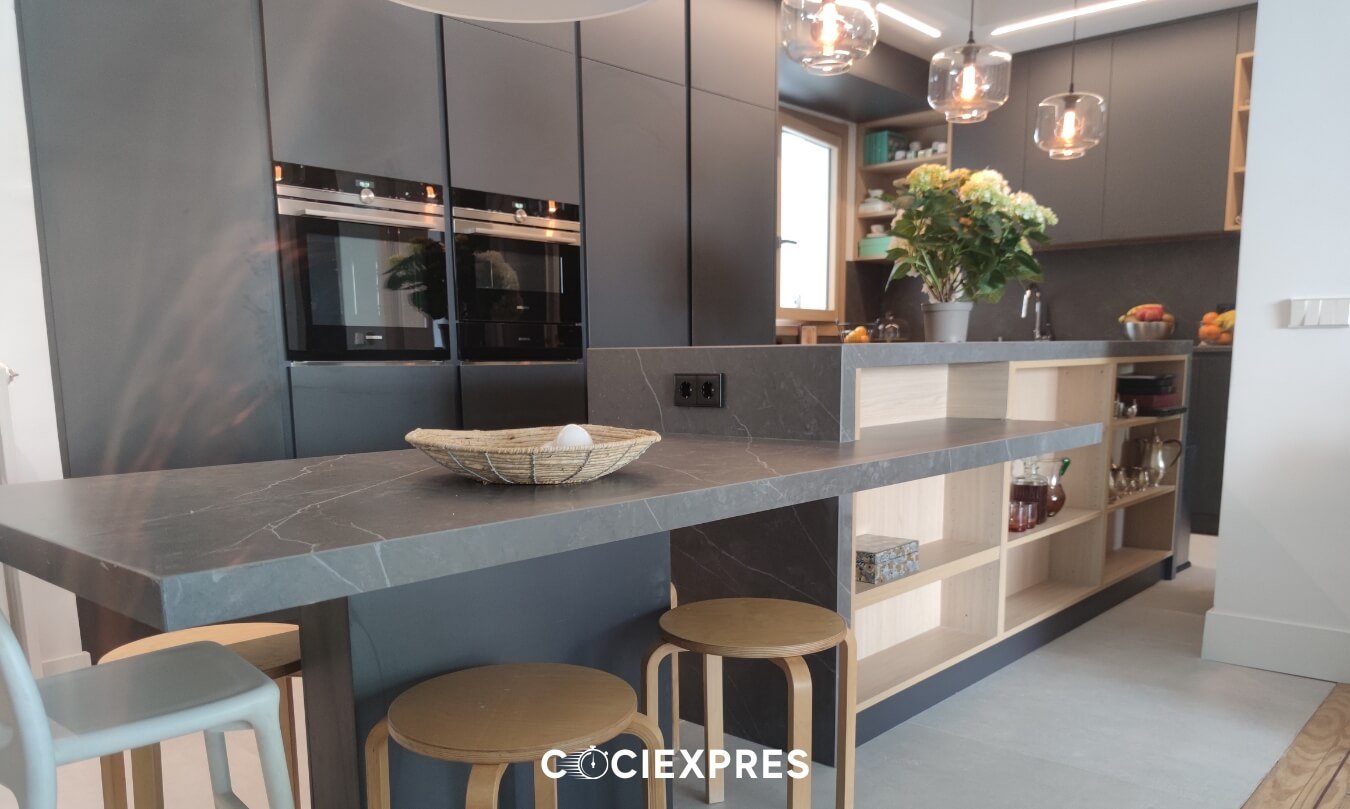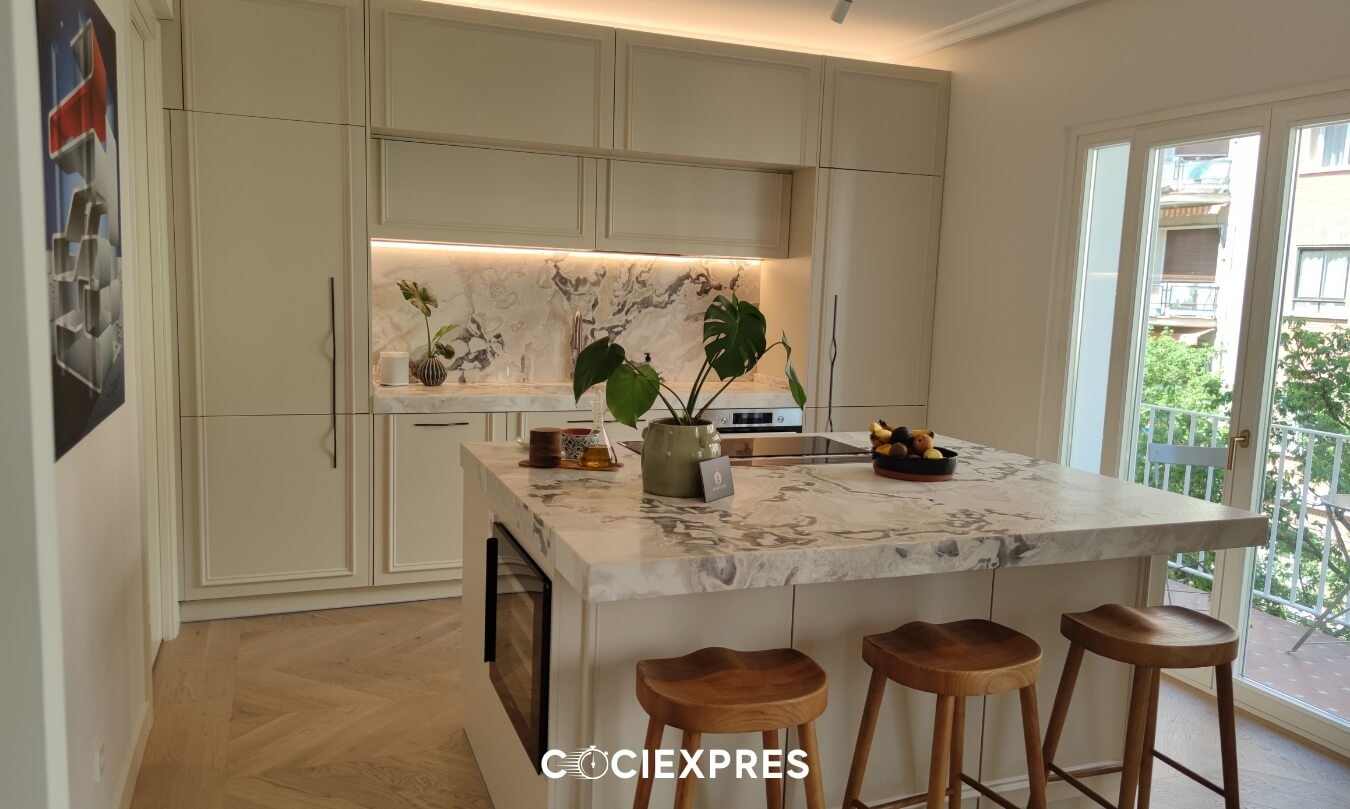 Mobiliario, encimera, electrodomésticos y remates finales.